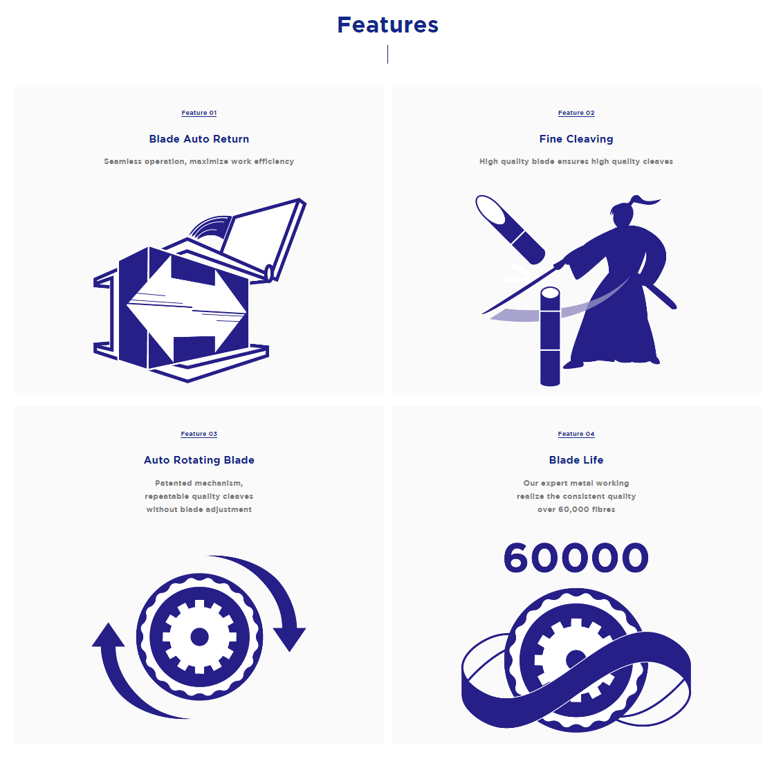 Kod FC-8R-F rezača jednostavnim zatvaranjem poklopca aktivira se automatsko rezanje vlakna. Zbog toga je ovaj alat pogodan za korištenje u jednoj ruci te je idealan kod rada u FTTx i LAN okruženju. Karakterizira ga i automatska rotacija noža prilikom svakog reza te integrirani spremnik odrezanih niti.